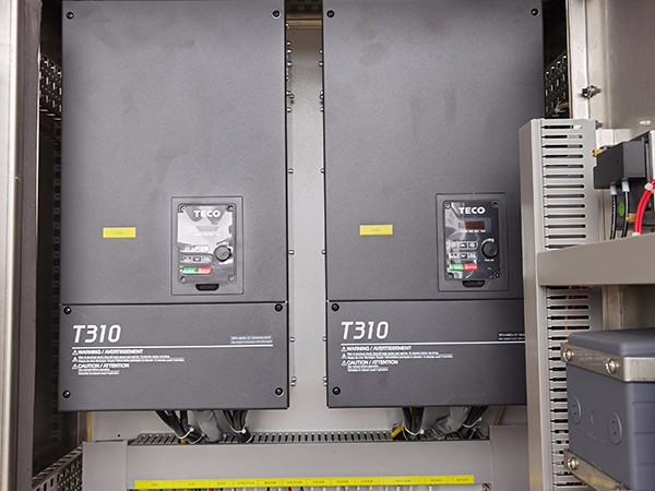 The inverter inside the cabinet uses the T310 series, featuring advanced motor tuning and measurement capabilities, high-level current vector control, and dual-core computing for high-speed processing.