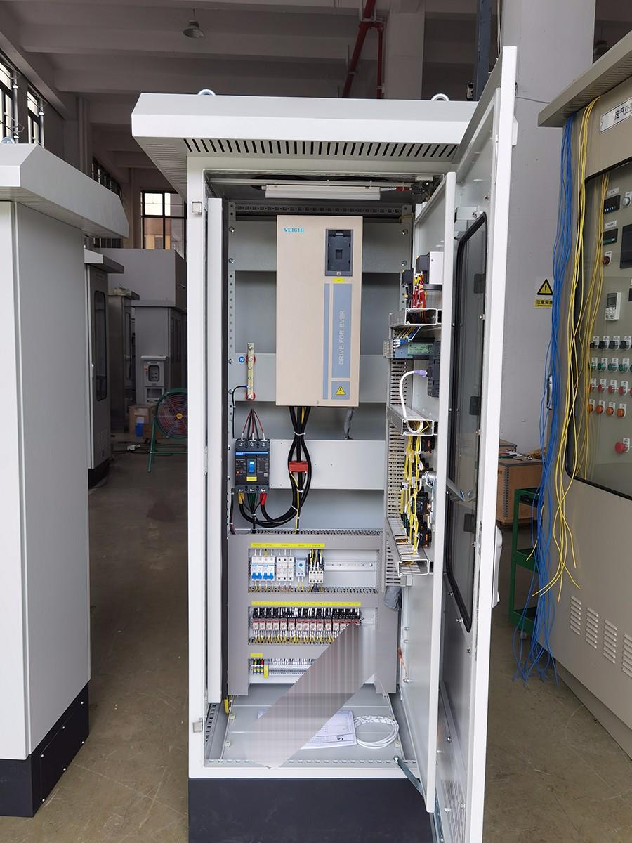 ● El armario cuenta con botones, luces indicadoras y un panel de funcionamiento avanzado. Este panel, conectado a los componentes eléctricos dentro del convertidor de frecuencia, muestra el estado de funcionamiento del convertidor de frecuencia y controla el arranque y la parada del convertidor de frecuencia.