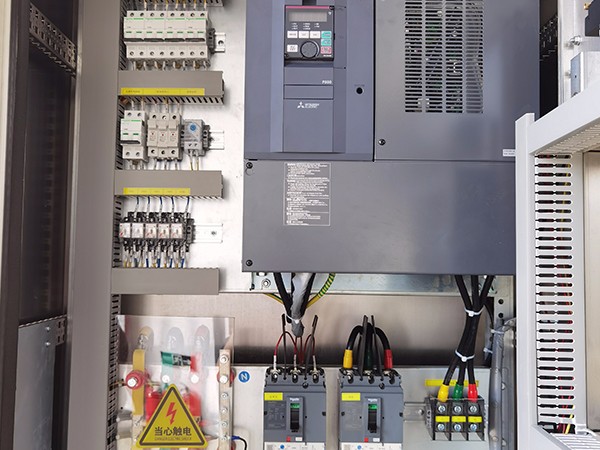 ● The frequency converter inside the cabinet is the FR-F800 series, which is energy-efficient and environmentally friendly. It maximizes motor performance while increasing starting torque and saving energy, allowing it to drive a variety of motors.