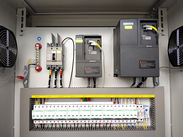 ● The main components inside the cabinet include a molded case circuit breaker, a miniature circuit breaker, an intermediate relay, an AC contactor, a frequency converter, and a PLC.